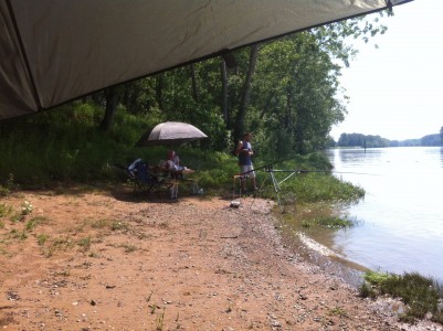 On entamera tout trois une pêche au quiver/feeder, Pipo en tête de courant, puis Pavince et enfin Nico, qui stratégiquement, jouera la carte de la récupération d’amorce en aval…;-) Il installera l’artillerie lourde composée de trois feeder et une canne circus. On utilisera respectivement des cages de 50, 60 et 100 grammes, dépendant du niveau de pêche. A grande distance le courant est plus soutenu, mais au bord et sur une bonne largeur d’environ 30 mètres, il est plus calme et stable, et aujourd’hui, 60 grammes suffisent pour tenir, on observe juste quelques mètres entre l’impact et le calage.