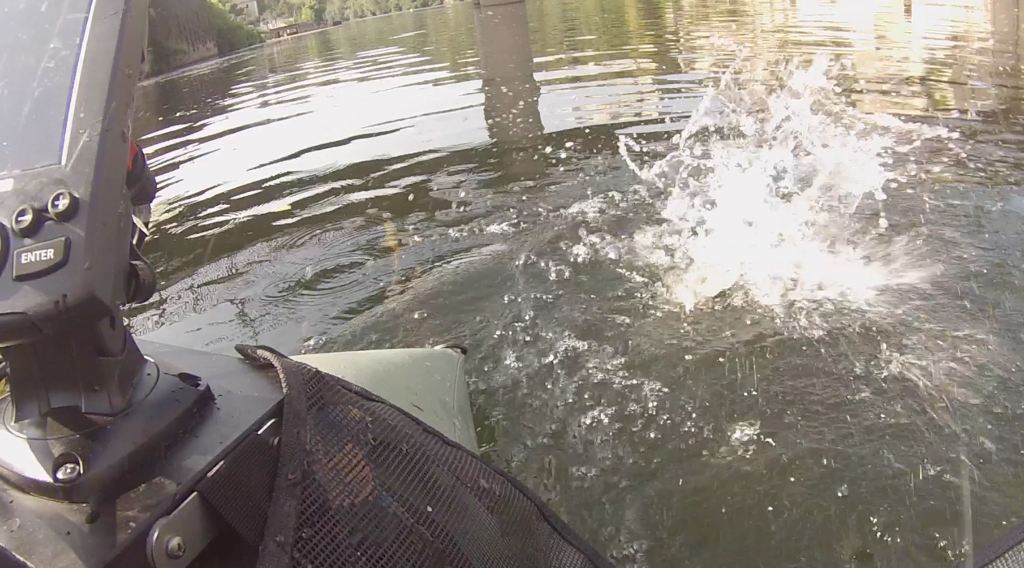 L’occasion pour Pavince de monter un premier chevesne de 28cm puis un Bass de 20 cm et de surprendre un joli 40+ sur un suivi dans les herbiers qui bordent les pontons du petit « port » situé en rive gauche.
