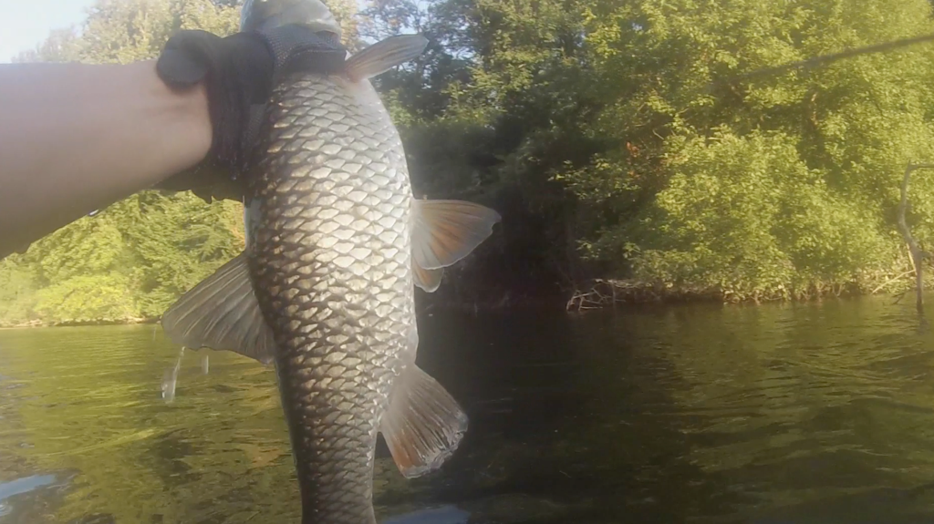 On fera une vingtaine de chevesnes pour une cinquantaine de touches, tout en surface bien évidement, c’est la technique principale volontairement utilisée. A l’aval, les résultats seront plus ou moins les mêmes avec globalement moins d’attaques, et donc de prise. Ces spots ne feront pas parti de nos must, ils sont plus fréquentés que d’autres biefs plus sauvages et les variétés représentées semblent plus restreintes. Les topologies présentent sont aussi moins propices avec parfois des hectares de hauts fonds de rochers dans 30 cm d’eau rendant la pratique impossible.