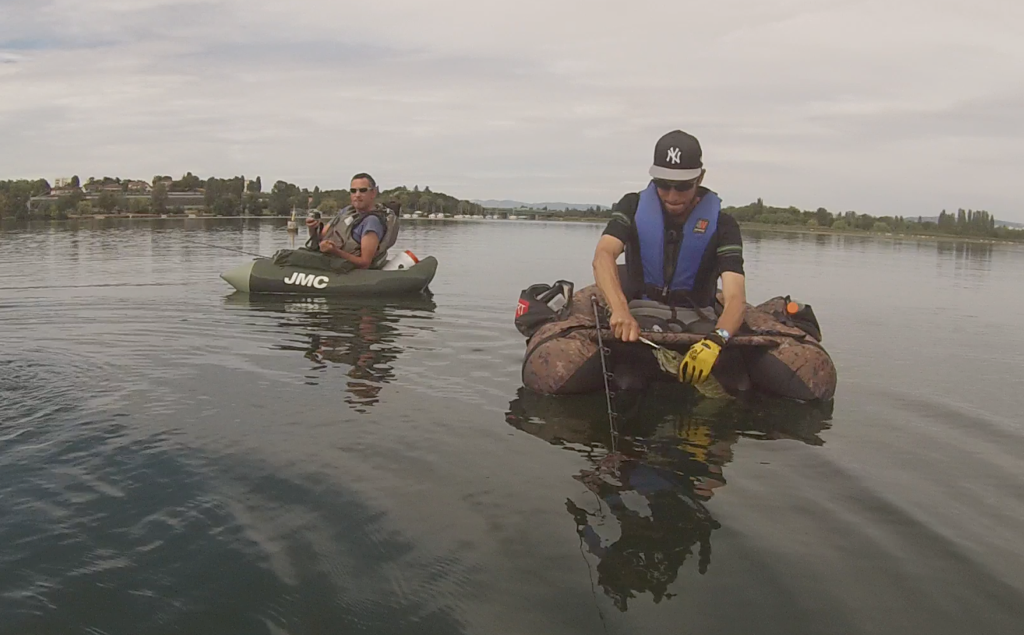 Le Grand Large en Float-Tube. On ira s’essayer avec Pipo et CLC, au Grand Large en Float-tube. On connait bien ce plan d’eau pour l’avoir pratiqué en bateau, et à part deux anecdotiques sorties en Tube la bas, on y avait jamais vraiment tremper les palmes. Pour CLC ce sera de toute façon une première. Le but du jour, en autre, lui faire prendre son premier brochet lyonnais ! Le temps est découvert et devrait se voilé petit à petit, offrant une chaleur moindre et une légère dépression, climat plus propice à la traque du carnassier. Les eaux sont trouble, la faucardeuse ayant été passée récemment selon des pêcheurs croisé. Malgré cela, d’énorme banc d’algues affleurent et rendent l’accès à certains endroit compliqué. On croisera même un pêcheur en Float dépité, nous annonçant l’impossibilité de pêcher plus loin en direction des pale-planche… Cela ne nous décourage point puisque la stratégie initiale était de se cantonner a une zone profonde à l’abord de l’un des ports, et d’y pratiquer en statique à l’image de ce que l’on avait fait à Miribel. Cette zone est parfaitement dégagée et seulement quelques herbiers l’habitent.! Très vite, chacun fera sa perche du jour, pas grosses, mais qui offre toujours un peu d’énergie pour poursuivre sa quête.